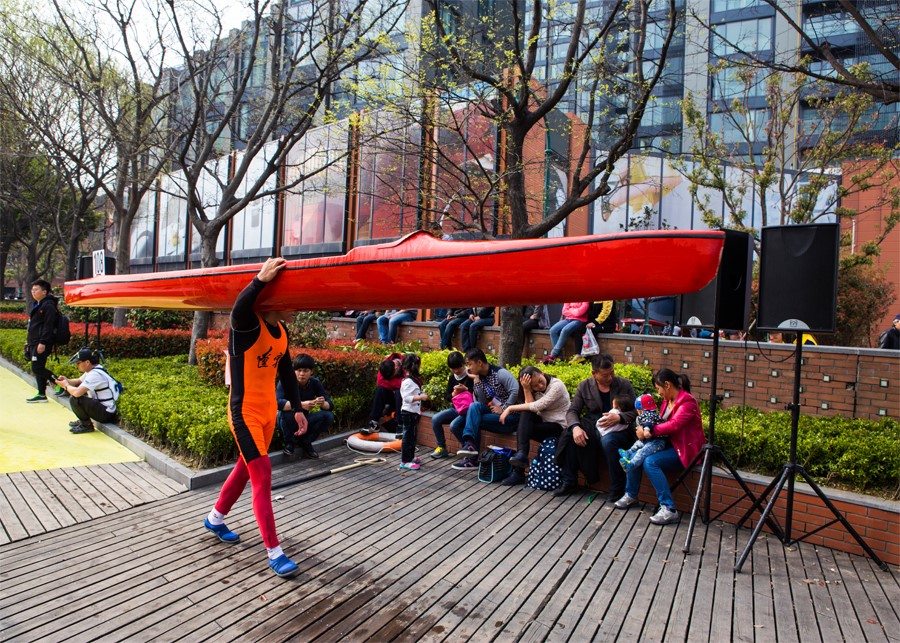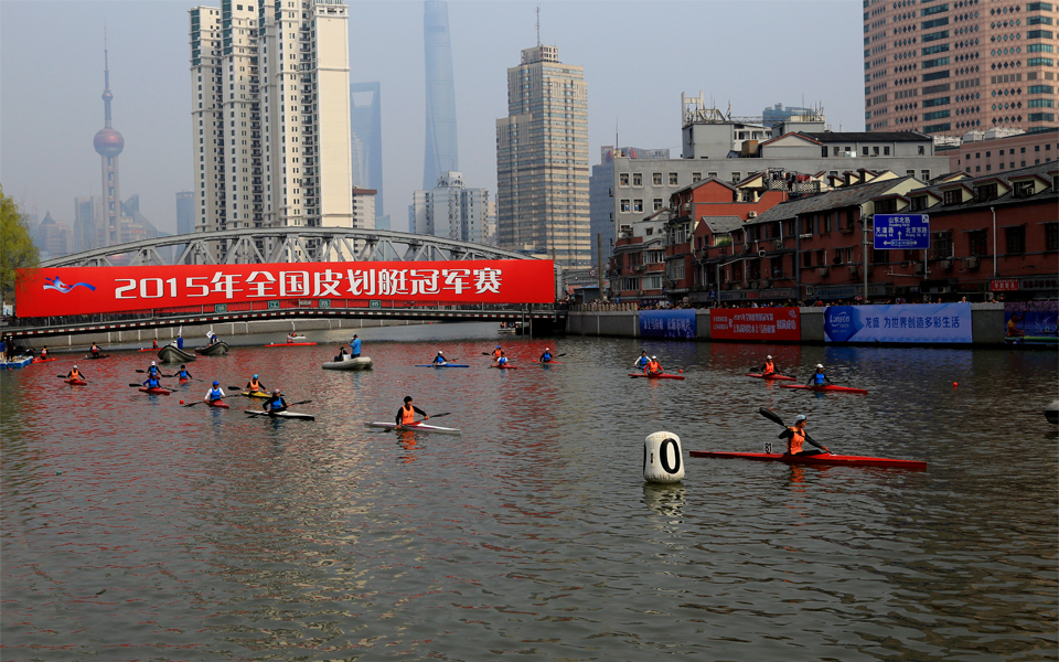 2015年全国皮划艇冠军赛上海苏河湾水上马拉松赛于3月29日在闸北区举行,来自全国151名皮划艇专业运动员和114名业余爱好者分别参加专业组和业余组比赛。专业组设置男子单人皮艇、男子单人划艇、女子单人皮艇。业余组设置男子单人皮艇、女子单人皮艇、双人艇。
