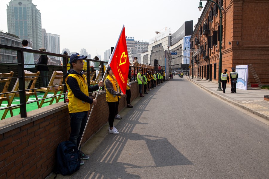 1000余名大学生志愿者参与安保服务,利用休息时间不计报酬,志愿为公益活动提供服务,帮助前来观赛的群众,用一样的微笑和爱心点亮河道两岸,成为水上马拉松一道亮丽的风景。