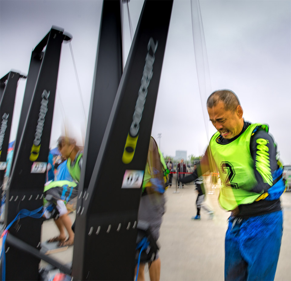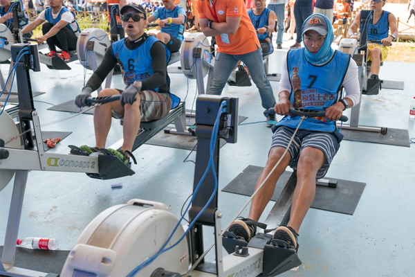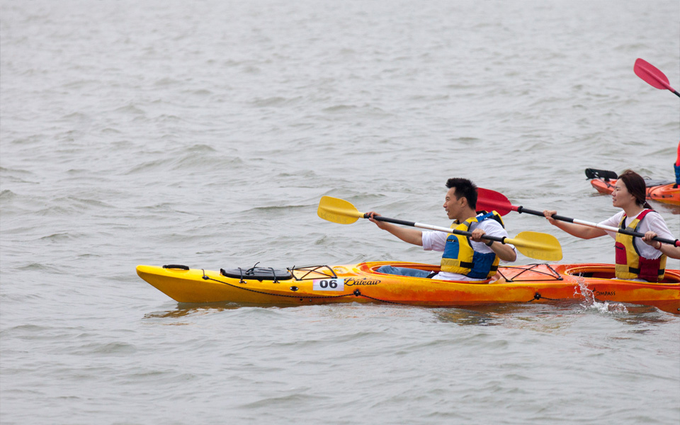 本次赛事既有竞技性,观赏性很强的竞赛项目,又有趣味性、娱乐性、互动性较强的参与项目,整场比赛高潮迭起、互相感染、丰富多彩,使广大的市民群众在观赏精彩、刺激的水上体育比赛的同时,又能身临其境、亲自参与体验水上运动的魅力和乐趣。相比前几日的初夏高温,当日的小雨送来阵阵凉意。碧波荡漾的滴水湖面微风裹挟着湿意,来自江浙沪三地的皮划艇\SUP桨板运动达人、爱好者和“新华小记者”家庭、“交大红娘”青春情侣共300名参赛人员同场竞技,挑战体能极限的皮划艇\SUP桨板、划船器、滑雪机三项全能以及日益受市民群众欢迎的陆上划船器等比赛。来自南汇新城镇的近百名居民群众坐上测功仪(划船器的别名),固定好脚蹬,握紧划浆,模拟水上划船运动拉浆发力,体验水上运动的激情和挑战,接力赛将运动场上的气氛推向赛事高潮。