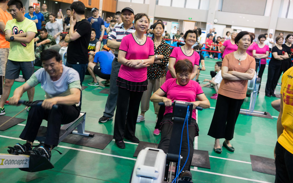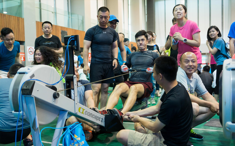 来自嘉定区12个街镇以及上海市区的划船器爱好者共71支队伍、近400多名运动员共同参加,展开了一场集娱乐、时尚、趣味、竞技的体育赛事。