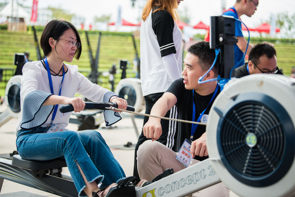 招商银行·2018上海国际大众体育节–划船器三项体能极限挑战赛(上海国际旅游度假区站)于9月22日在上海国际旅游度假区大通广场中心舞台区域开赛。男、女个人三项体能极限挑战赛的赛程距离为1800米,参赛选手需依次连续通过划船器(500米)、动感单车(1000米)和滑雪机(300米)三项器材,完成全部项目,按连续完成全部三项比赛的总用时排名。