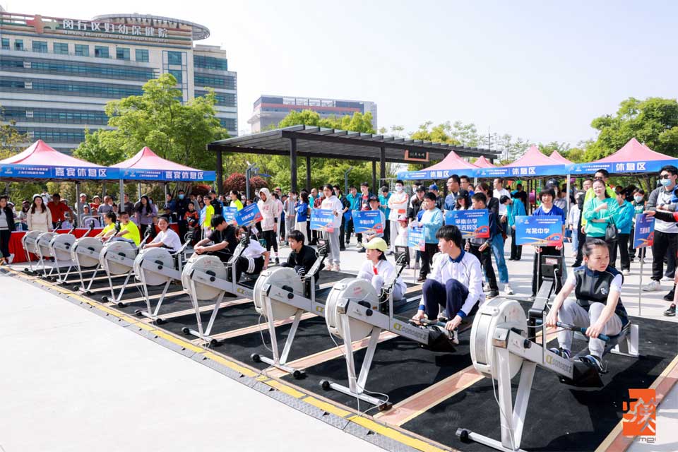 2023年“兴业银行杯”上海城市业余联赛上海市划船器系列赛古美校园赛于4月16日在古美公园拉开帷幕,近10所学校组队参赛。